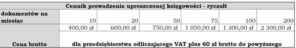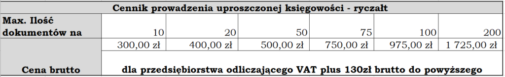 KSIĘGOWOŚĆ UPROSZCZONA – RYCZAŁT EWIDENCJONOWANY